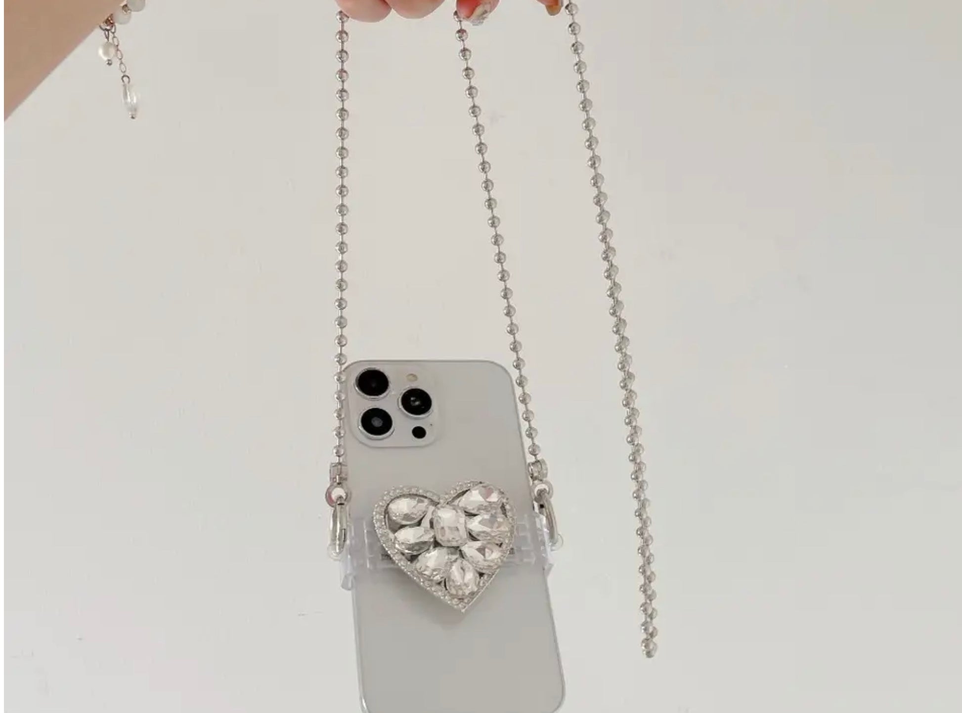 Crossbody rhinestone back clip with rhinestone strap. Phone within reach at all times.